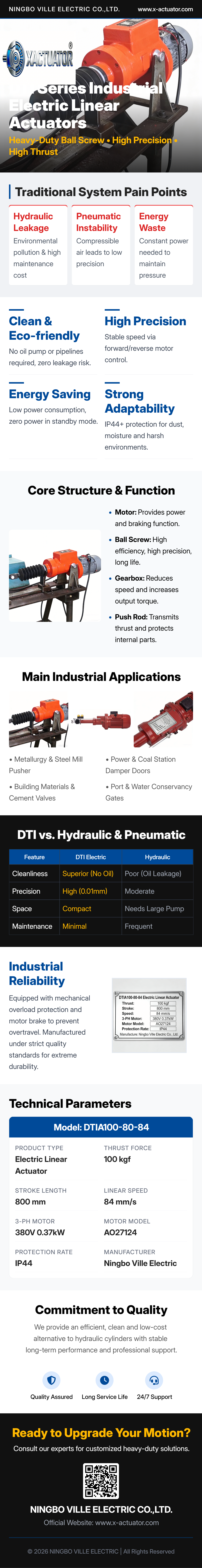 Technical Specification Table-Electric Linear Actuator